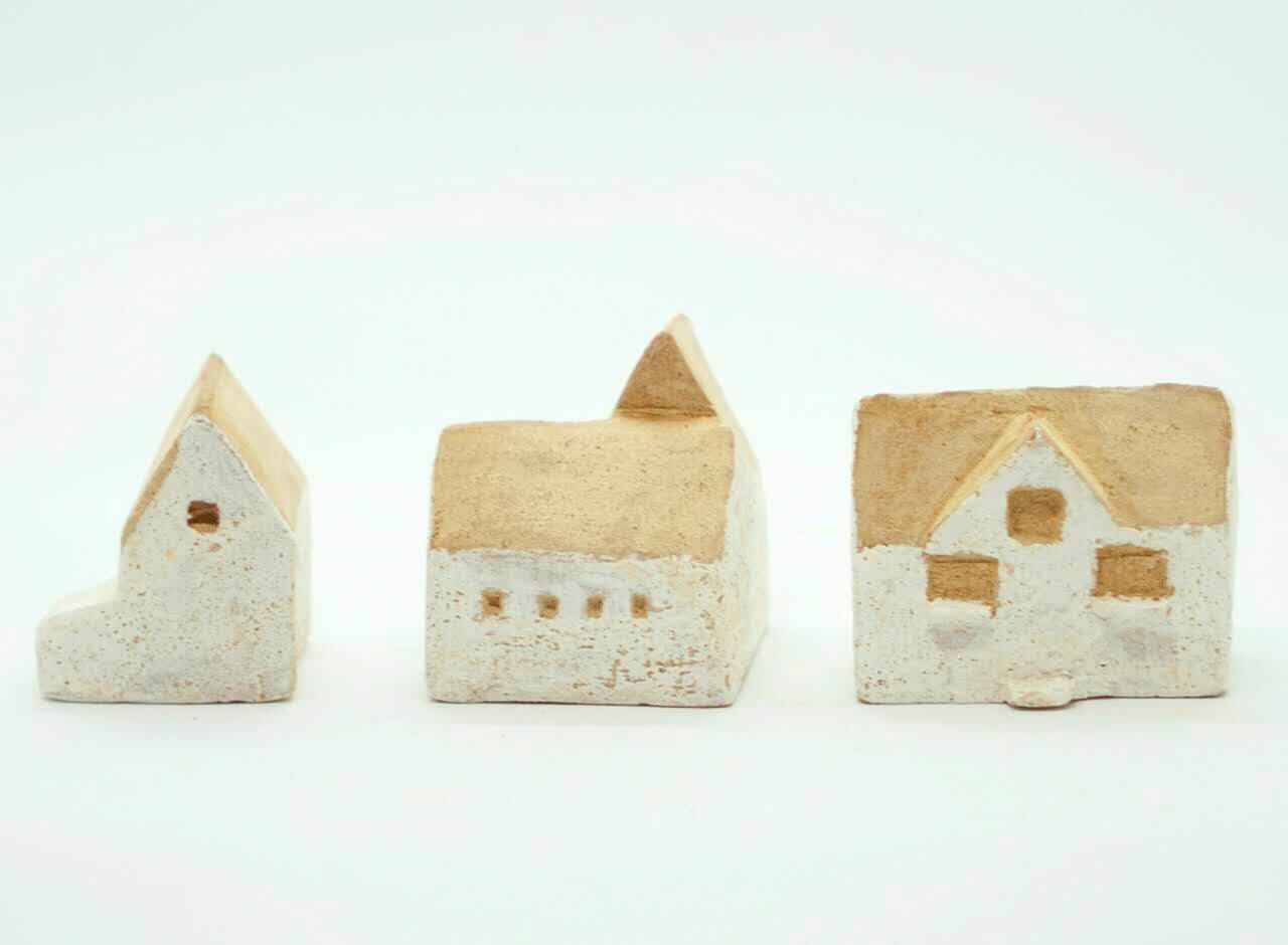 ひとつひとつが作家の手作りなので、すべて違うデザインの家の3棟セットです。