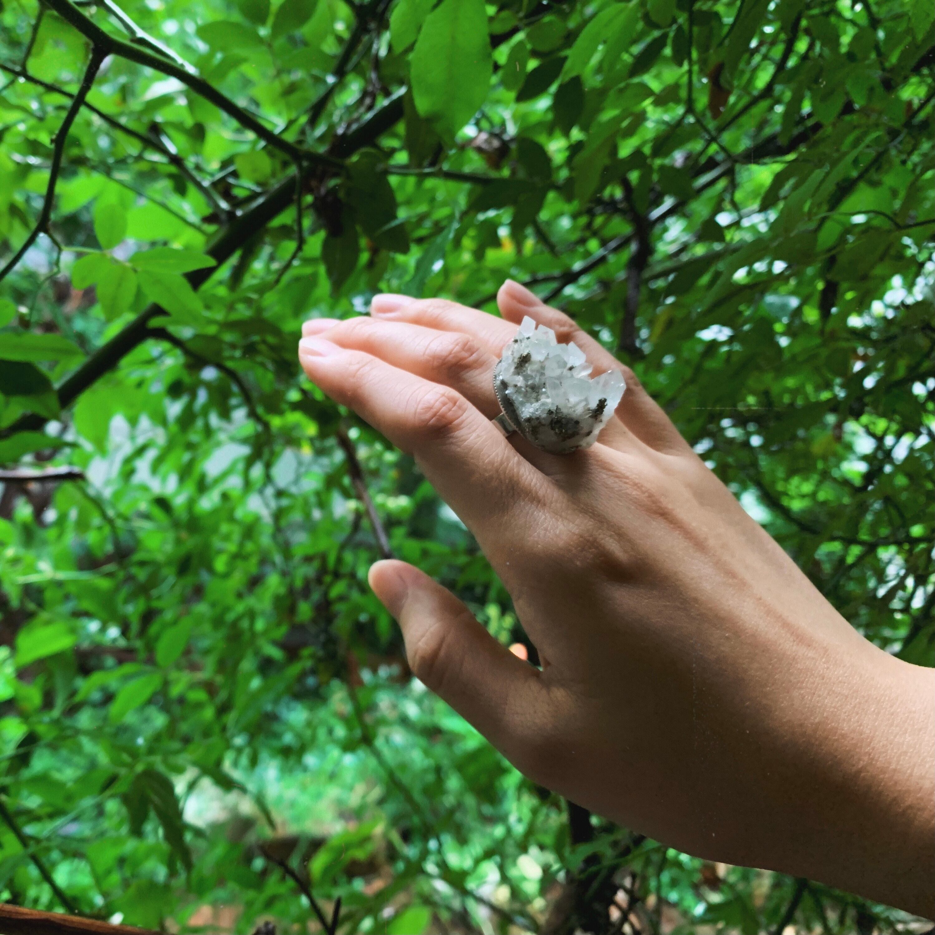 【手のり鉱石のゆびわシリーズ】水晶とパイライト